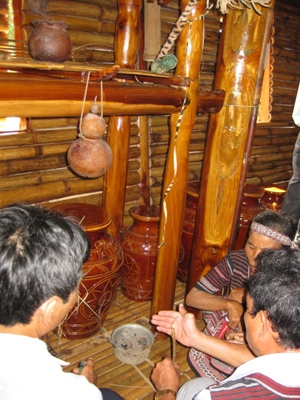 The house is built to create space for Choro ethnic group’s cultural activities and festivals. The construction of this project was started late 2008. The project has a total area of nearly 4,000 m2, including a Long House of 209m2, green trees, grass, a fountain and toilets. The project has a total construction cost of nearly VND2.9 billion and its investor is the management board of the Vinh Cuu Historic Monument and Nature Reserve. More than 100 file photos of Choro ethnic group’s culture and customs, of 50 historical objects which have been collected and restored and which are living, hunting and farming tools including gongs, wine jars, back baskets, bows, rattan hammocks, sedge mats, mortars and so on and of superstitious rituals like welcoming the rice god and entering the new house are being displayed in the Long House