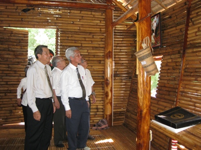 Deputy Secretary of the provincial Standing Party Committee – Le Hong Phuong, Chairman of the provincial People's Committee – Vo Van Mot and delegates visit the Long House |
