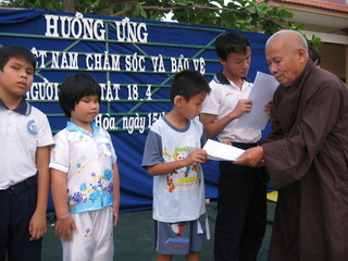 A Gia Lam Thien Sanh temple representative is offering scholarships to the Center’s children |