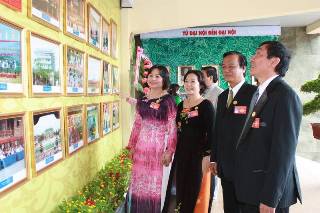 Besides photos and models showing achievements of socio-economic achievements of each Party organ in the last 5 years, many booths also displayed distinctive products, such as Bien Hoa with Photos of Tran Bien Temple of Literature, Nhon Trach with its District model in the future, Thong Nhat with its typical farm produce (bananas, guavas ...), Trang Bom with its arts and crafts products and enterprise sector with its key industrial products