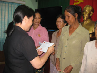 Ms Le Thi My Phuong, Director of Dong Nai DOLISA, is handling savings books to policy beneficiaries |