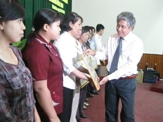 | Nguyen Dem, Member of the provincial People's Committee handed certificates over to agencies and units with good cultural life in 2009. |