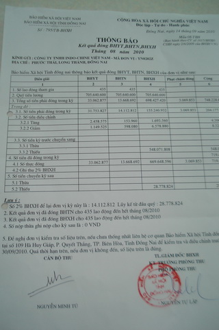 On September 24, 2010, inspectors of Dong Nai Department of Labors, War Invalids and Social Affairs and the provincial Labor Union had a working session with representatives of Indochine limited company. The working session was attended by Ms Ngo Phuong Mai, human resource manager of Indochine limited company, Mr. Nguyen Khac Trieu from the provincial Labor Union, and two inspectors of Mr. Cao Duy Thai and Ms Nguyen Thi Kim Thuy. After reviewing the company’s explanation, documents and labor contracts, the delegation of inspectors asked the company to conduct some regulations on the problem of not paying senior workers when they were transferred from Nahnoom Co., Ltd. In particular, the company would join hands with grassroots trade union to explain that workers would receive severance allowance (including the working period at Nahnoom Co., Ltd) fully and in time when ceasing to work. The company had paid social insurance for its workers by August 30, 2010. Besides, the delegation of inspectors also suggested that the company should clearly explain social insurance regimes to its workers. The company should carry out signing labor contracts with its employees in accordance with the regulations as stipulated in Articles 27 and 29 of Vietnam Labor Law, Decree No.44/2003/ND-CP and Circular No.21/2003-TT-BLDTBXH of the Ministry of Labor.