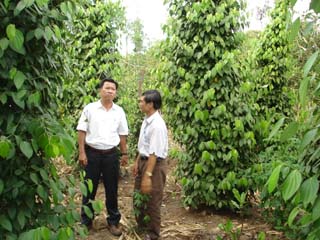 For effective production and through technical training courses, agriculture extension coordinators guided peasants to grow plant seeds with high productivity and quality such as coffee (TR4, TR5, TR6 breeds), pepper (Vinh Linh, India), durian (DONA, Ri6),… Especially, for those areas using old breeds with low productivity, the Center will, at hand, concentrate on such methods as the intensive cultivation and productivity enhancement for the purpose of improving cultivation efficiency, and gradually change to better breeds by applying the rapid method of breed modification. Such techniques as intensive cultivation, water-saving irrigation system, hose fertilizing system, blossoming treatment for successive crops, are also applied widely. Statistically, the water-saving irrigation system can help to save watering effort (90-95%), increase water utilization and economy (35-40%), fuel saving (20%), restrict blossom and young fruit fall, release labor effort, and actively control watering time to boost up productivity (10-15%). Economical watering and hose fertilizing, along with intensive cultivation techniques are important to make plants blossom at wrong season in an effective and sustainable way. Results produced by applying agriculture extension models indicated that the productivity was raised to 70% for rambutan, 250% for mango, 50% for custard apple, 30% for durian, 20% for grapefruit. As for pepper, the average productivity in the past was 1.84 tons/ha and gains 7-8 tons/ha in the present; particularly, there was one model achieving peak production of 10 tons/ha.
