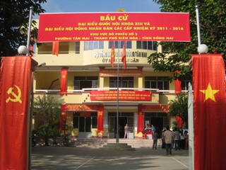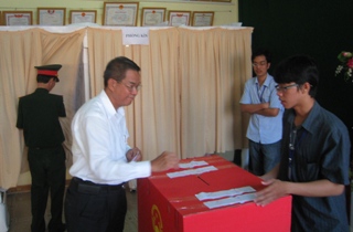 Chairman of Dong Nai People’s Committee Vo Van Mot is casting his vote at the polling location 1 in Quang Vinh ward |