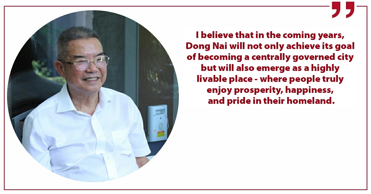<p>&nbsp;</p><figure class="image"><img style="aspect-ratio:300/226;" src="https://dongnai.gov.vn/uploads/binhphuoc/news/2026_04/image-20260406121631-1.jpeg" alt="" width="300" height="226" /><figcaption>Vo Van Mot, former Deputy Secretary of the PPC and former Chairman<br />of the Provincial People’s Committee. Photo: Huy Anh</figcaption></figure><p><br />&nbsp;</p><p>At this historic turning point, Dong Nai Newspaper and Radio, Television conducted a brief interview with VO VAN MOT, former Deputy Secretary of the Provincial Party Committee (PPC) and former Chairman of the Provincial People’s Committee.</p><h1 style="margin-left:3px;text-align:justify;"><span style="color:rgb(231,75,60);"><i>* Based on your practical experience as a former provincial leader, how do you assess Dong Nai’s current development planning and for the coming period?</i></span></h1><ul><li><p style="text-align:justify;">From the perspective of a former provincial leader, I - like many others - have always hoped to see both the country and the province continue to grow. I still remember that Long Thanh International Airport was first planned as early as 1991 by the Dong Nai PPC, the People&#039;s Council, and the Provincial People&#039;s Committee. After many decades, the airport is now present. It stands as a</p></li></ul><p>clear testament to the long-term vision and perseverance of the generations of Dong Nai&#039;s provincial leadership.<br />The transport system is the “lifeblood,” playing an extremely important role in the socio- economic development of Dong Nai province in particular and the whole country in general. Therefore, Long Thanh International Airport carries even greater significance, particularly if the proposal to establish Dong Nai as a centrally governed city is approved by the National Assembly.<br />However, I believe planning between the airport and surrounding areas remains insufficiently integrated. The province needs to take a more decisive approach in reviewing, adjusting, and implementing its plans in a coordinated manner, avoiding fragmented and disconnected development. When Long Thanh International Airport comes into operation, pressure on population distribution, as well as technical and social infrastructure in surrounding areas, will increase rapidly. Without thorough preparation, traffic congestion is a significant risk. Planning, therefore, should not focus solely on urban expansion but must also ensure balanced population distribution alongside synchronized development of social infrastructure.</p><p><img src="https://dongnai.gov.vn/uploads/binhphuoc/news/2026_04/image-20260406121631-2.jpeg" alt="" width="700" height="366" /></p><ul><li><p style="text-align:justify;"><span style="color:rgb(231,75,60);"><i>In your view, what are the key “bottlenecks” or challenges that need to be addressed when the proposal of establishing Dong Nai City is approved?</i></span></p></li><li><p style="text-align:justify;">Alongside significant opportunities, Dong Nai faces a major challenge - its human resources. For decades, the province has attracted a large influx of migrant workers due to its extensive industrial zones. However, this workforce remains largely unskilled, with a shortage of trained labor possessing technical expertise.</p></li></ul><p>&nbsp;</p><p><img src="https://dongnai.gov.vn/uploads/binhphuoc/news/2026_04/image-20260406121631-3.jpeg" alt="" width="700" height="467" /></p><p><span style="color:rgb(102,102,102);">A view of Tran Bien ward, Dong Nai province. Photo: Cong Nghia</span></p><p>Looking ahead 10–20 years, even the unskilled workforce will become an &quot;aging population.&quot; The pressing task now is to invest in vocational training and improve workforce quality to bridge this gap, ensuring the province does not fall behind in an era of rapid technological advancement.</p><figure class="table" style="float:left;"><table><tbody><tr><td>&nbsp;</td></tr></tbody></table></figure><p><img src="https://dongnai.gov.vn/uploads/binhphuoc/news/2026_04/image-20260406121631-4.jpeg" alt="" width="700" height="366" /></p><figure class="table" style="float:left;"><table><tbody><tr><td>&nbsp;</td></tr></tbody></table></figure><p><span style="color:rgb(231,75,60);"><i>The ultimate goal of the proposal of establishing Dong Nai City is to improve people’s lives, securing prosperous and happy living standards for the locals. What are your expectations for the province’s development when Dong Nai becomes a centrally governed city in the time ahead?</i></span></p><ul><li><p style="text-align:justify;">Compared to the years following national reunification in 1975, the country has undergone significant changes up until now. I still recall a time when my wife and I simply hoped to secure enough rice rations to feed our children. Today, living standards have improved significantly.</p></li></ul><p>With the Government targeting double-digit economic growth, I believe that within the next 10– 20 years, people’s lives in Dong Nai will be far more modern and prosperous than they are today. However, development should not be measured solely by growth figures or per capita income. More importantly, it must lead to a comprehensive improvement in quality of life. People should live in well-planned urban environments, with synchronized infrastructure, efficient transport systems, and high-quality healthcare, education, and cultural services.<br />With major drivers such as Long Thanh International Airport, expanding expressways, and an increasingly integrated regional transport network, Dong Nai is well-positioned to achieve breakthroughs. However, opportunities always come with challenges, the province also needs a long-term vision, methodical planning, and strict management to develop in the right direction.<br />I believe that Dong Nai will not only achieve its goal of becoming a centrally governed city but will also emerge as a highly livable place - where people truly e