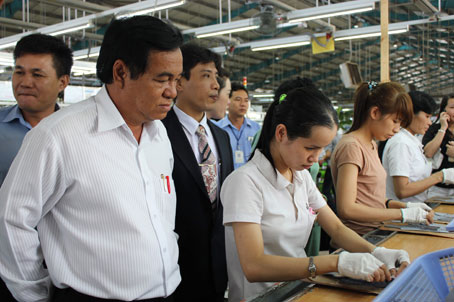 チャン・ディン・タン書記はベトナムChangshin会社の生産ライン(写真:K.N)