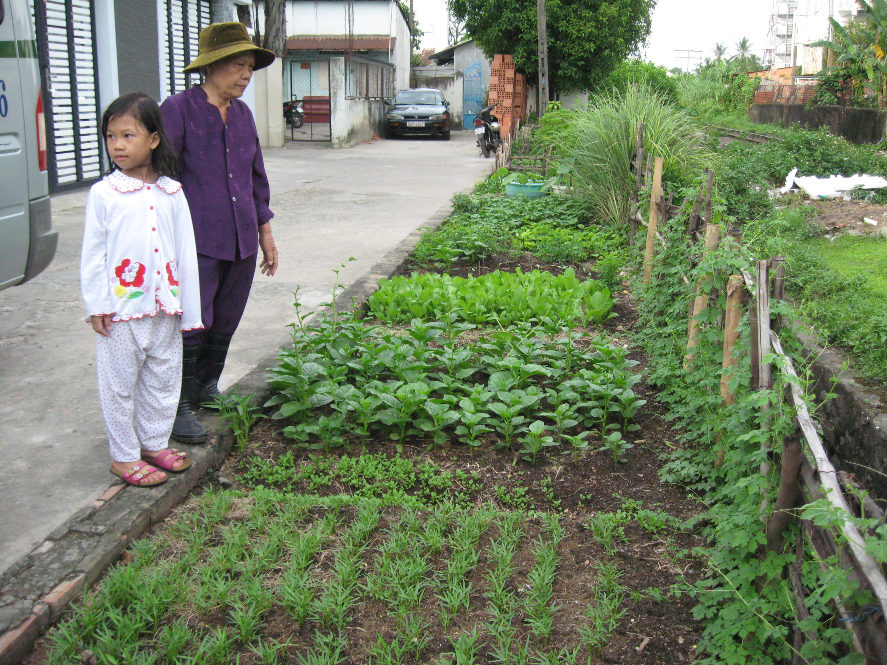 他の住民グインティダ(Nguyen Thi Da)さんは「私も野菜を植えるのに空き地を利用しました。市場で売れている各種類の野菜の中にあるアンフェタミン、農薬に関する情報が心配させていました。私が4平方メートルの面積で野菜を植えてますが、2週間までも食べられます。自分で植えるのが安心を感じますね。化学肥料を使わないで、水をやり、堆肥を与えるだけど、野菜が強く生長している。時々、家族が少ない時、野菜がいっぱいんですが、近所をあげてしました。」と言った。