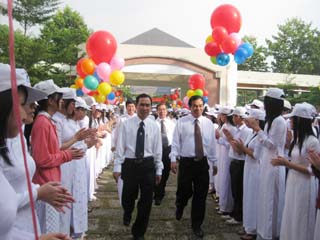 チャンディントゥアン(Tran Dinh Tuan)先生によりますと、半公立学校から公立へと移り変わる学校から、2009年~2010年の11年生・2年生の学生の質が良くない。でも、学校は教育・訓練の質を向上し、卒業する学生数を高めよう努力しているという。