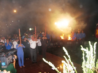 レー・ホン・フン様はモニュメント で線香をつけている |