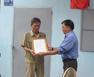 ビエンホア市枯葉剤被害者協会のグエンヴァンスアン主席は、「貧しい人のための仁愛家」決まりを渡した。