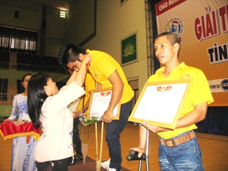 主催者であるドンナイ労働・傷病兵・社会省のレー・ティ・ミー・フン社長は選手たちに賞を渡している |