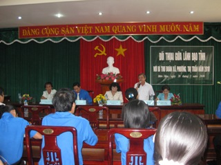 ドンナイ省のリーダーと村・町の青年団の書記長の会話。 |