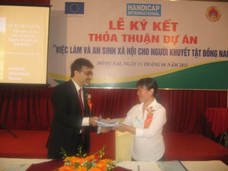ドンナイ省の労働・傷病兵・社会レー・ティ・ミー・フン社長およびHandicapの代表者は協力覚に調印 |