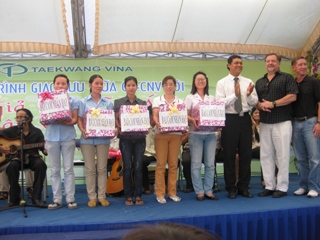 | グエン・ア(白いシャツ)筆者及び会社の指導者は良い著者に賞を渡している |