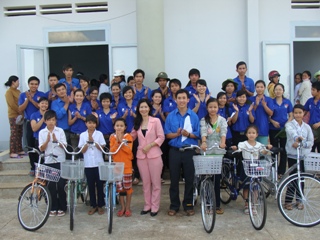 ドンナイ大学の青年団は貧しいけれど、向学心のある学生に自転車を渡している