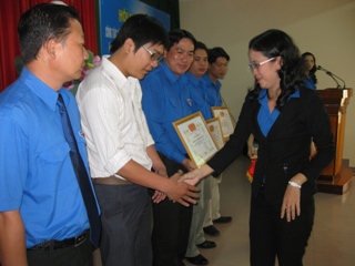ドンナイ省青年団は成績の良い団体、個人に賞を渡している