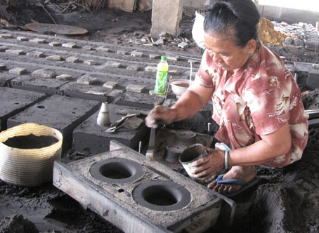 탄푸마을 제2호 읍, 응우엔황민님의 공장에서 일하고 있는 주철 장인 |