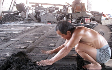 쯔엉떤터 ( Truong Tan Tho)- 탄푸마을, 제2호 읍에서 주철공장의 사장은 “ 저는 젊었을 때부터 주철직업과40년동안 같이 살았는 데 이 직업은 지금처럼 약해 진 적을 못 봤습니다. 4년 전에 한달에 3개의 주문이 있었지만 지금은 한달에 한번으로 감소하고 주문량도 반으로 감소되었습니다. 주문과 원료의 가격에 대한 어려움 외에 장인의 수당은 2~3배가 더 증그하였지만 제품의 가격은 5~8%가 증기해서 손해를 보거나 득실이 없게 된 것에 받아들일 수밖에 없습니다”라고 이야기를 나누었다.