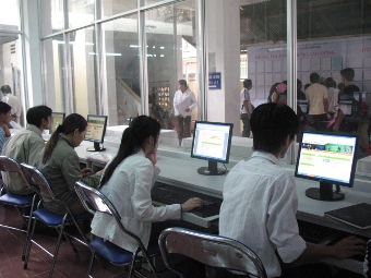 취업 박람회에서 일자리를 찾고있는 노동자 모습