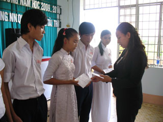 30인이상의 장학금을 이번 장학금수여식에서 수여하였다.1인의 장학금당 일년에 고학생에게4,5천만동, 중학생에게 2,7천만동, 초학생에게 1,8천만동을 지급합니다.