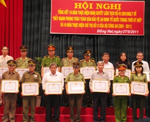 “ 새로운 상황에의 전민들이 국가안보를 보호하는 운동 강력히 추진에 대한 제 01호 결의안 실현 10년 총결 회의에서 개인들 과 단체들에게 상을 수여