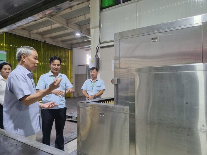 Đoàn công tác kiểm tra an toàn thực phẩm tại Công ty TNHH Sông Hồng Tân.