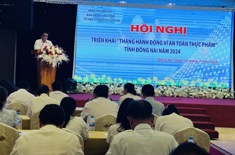 Phó Giám đốc Sở GD-ĐT Đỗ Huy Khánh phát biểu tại hội nghị triển khai Tháng hành động vì an toàn thực phẩm tỉnh Đồng Nai năm 2024