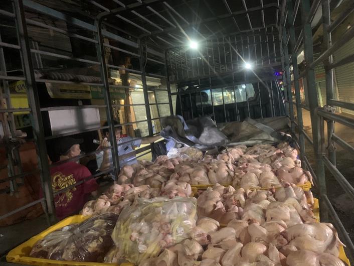 Lực lượng chức năng kiểm tra xe chở thịt gà vào chợ Tam Hòa, TP.Biên Hòa
