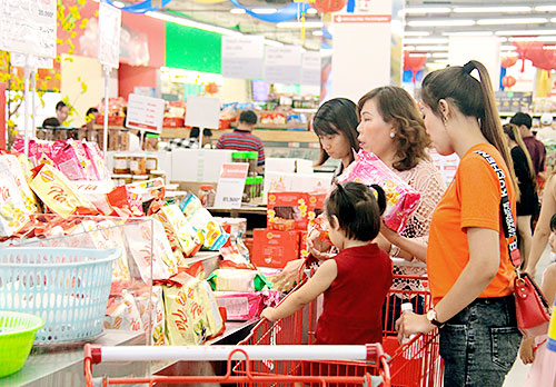 Khách hàng chọn mua hàng Việt tại một siêu thị ở TP. Biên Hòa.