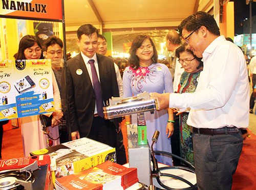 Các đại biểu tham quan các gian hàng hội chợ Hàng Việt Nam chất lượng cao tỉnh Đồng Nai 2018.