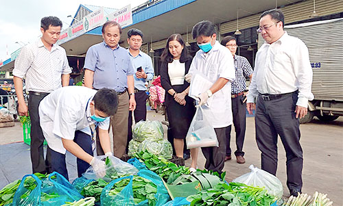 Ngày 5-7, đoàn kiểm tra liên ngành về an toàn thực phẩm (ATTP) đã tiến hành kiểm nghiệm nhanh về an toàn thực phẩm tại Chợ đầu mối Dầu Giây (huyện Thống Nhất).