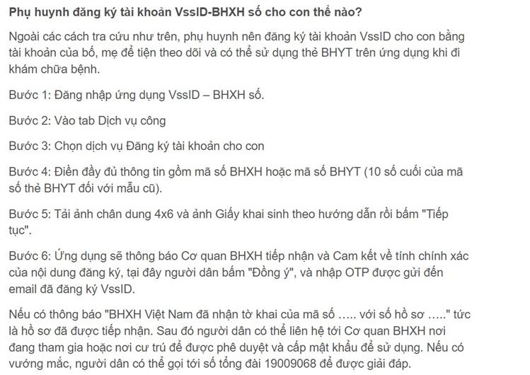 Cách đăng ký tài khoản VSSID cho con