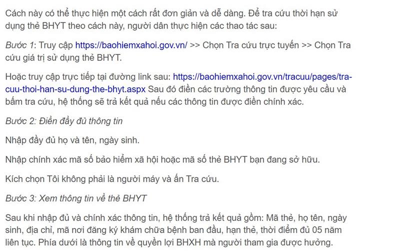 Các bước tra cứu BHYT trên Website của Bảo hiểm xã hội Việt Nam