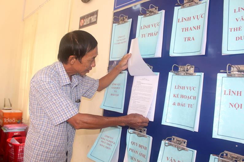 Người dân xem thông tin về các bộ thủ tục hành chính được niêm yết tại Bộ phận một cửa UBND TT.Hiệp Phước, H.Nhơn Trạch