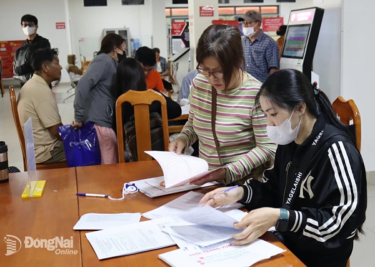 Người dân làm thủ tục đất đai tại Trung tâm Phục vụ hành chính công xã Long Thành.