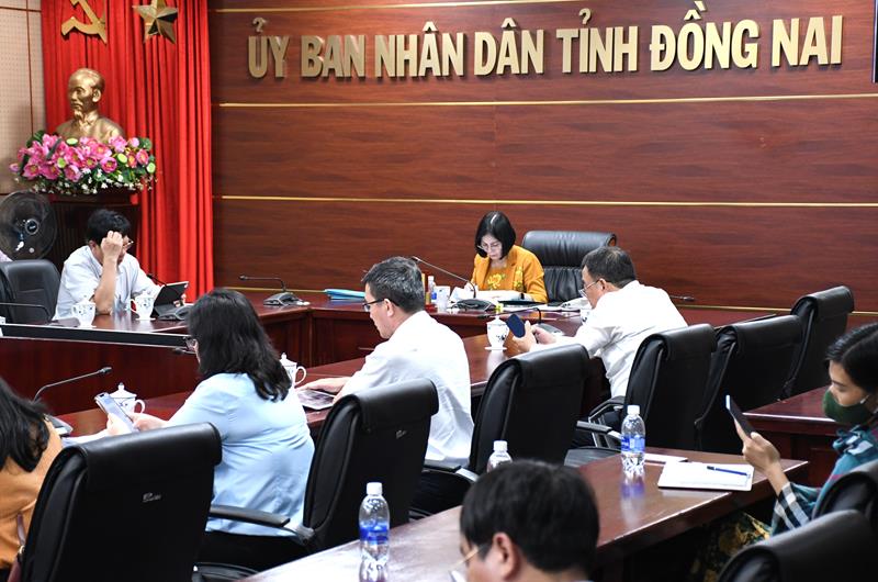 Phó Chủ tịch UBND tỉnh Nguyễn Thị Hoàng cùng các sở, ngành dự tại điểm cầu Đồng Nai