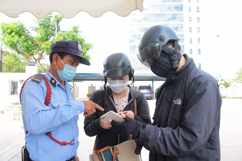 Nhân viên Trung tâm phục vụ hành chính công tỉnh hướng dẫn cho người dân đến giải quyết thủ tục hành chính ngay từ khu vực cổng vào