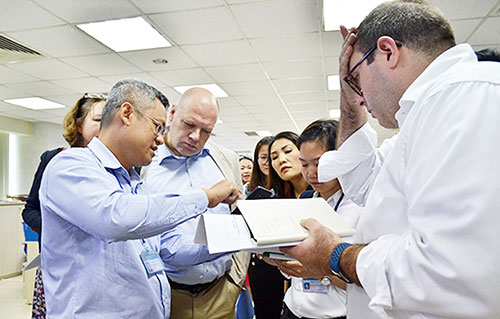Phó Giám đốc Sở Nội vụ Tạ Quang Trường (bìa trái) giới thiệu mô hình “Phi địa giới” hành chính.