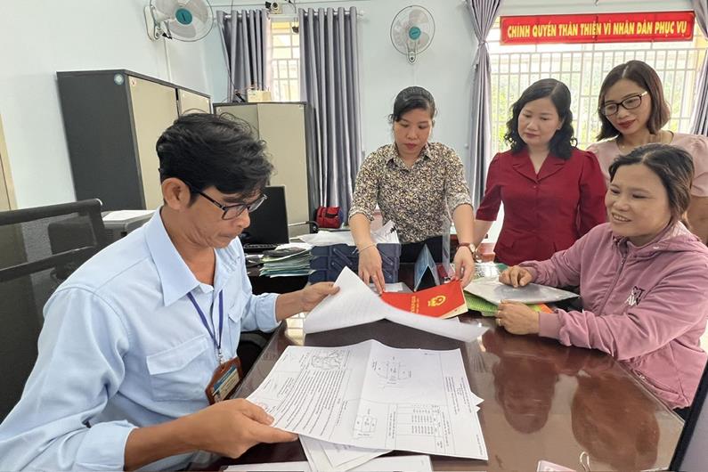 Cán bộ thành phố Long Khánh và xã Bình Lộc hỗ trợ người dân giải quyết thủ tục hành chính