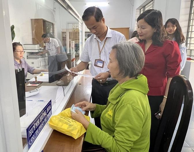 Lãnh đạo Phòng Nội vụ Long Khánh và cán bộ phường Xuân An hỗ trợ người dân thực hiện thủ tục hành chính trong mô hình “1 giờ buổi sáng vì dân”.