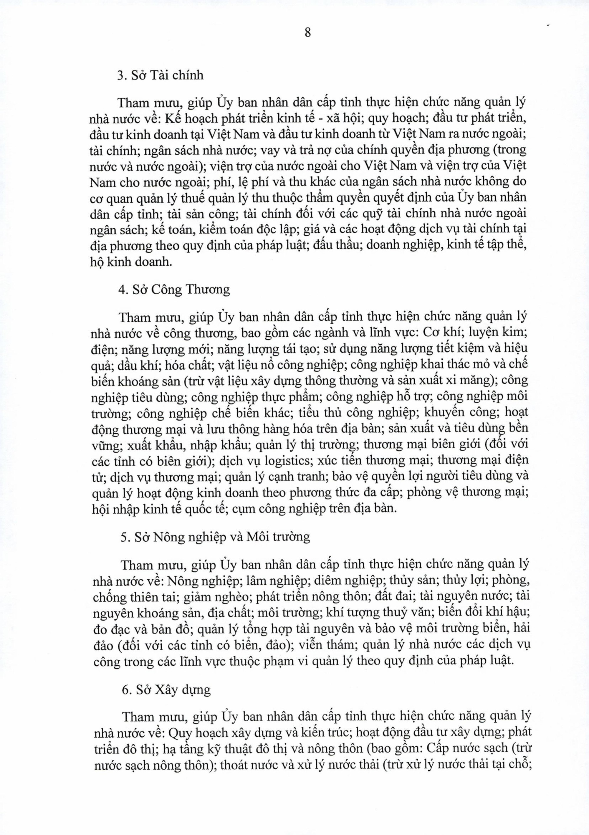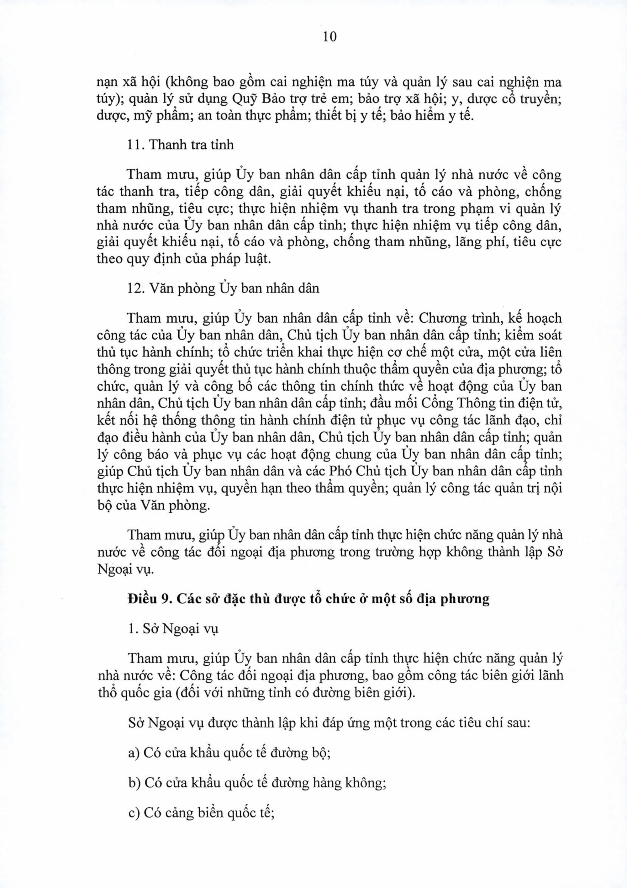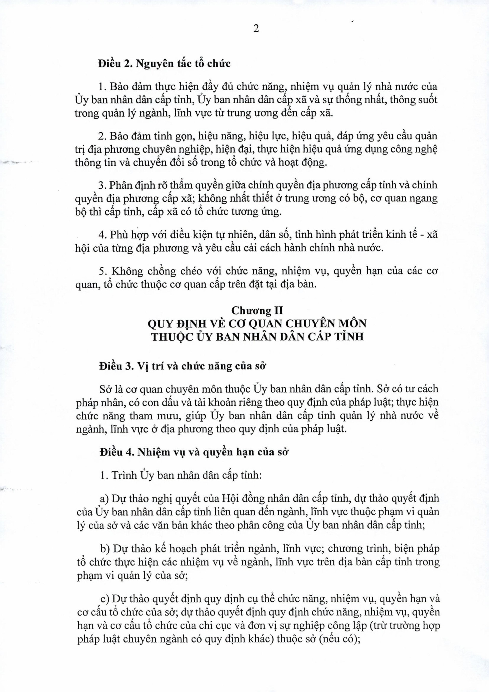 Chương II - Quy định về cơ quan chuyên môn thuộc Ủy ban nhân dân cấp tỉnh, gồm 8 điều (từ điều 3 đến điều 10).