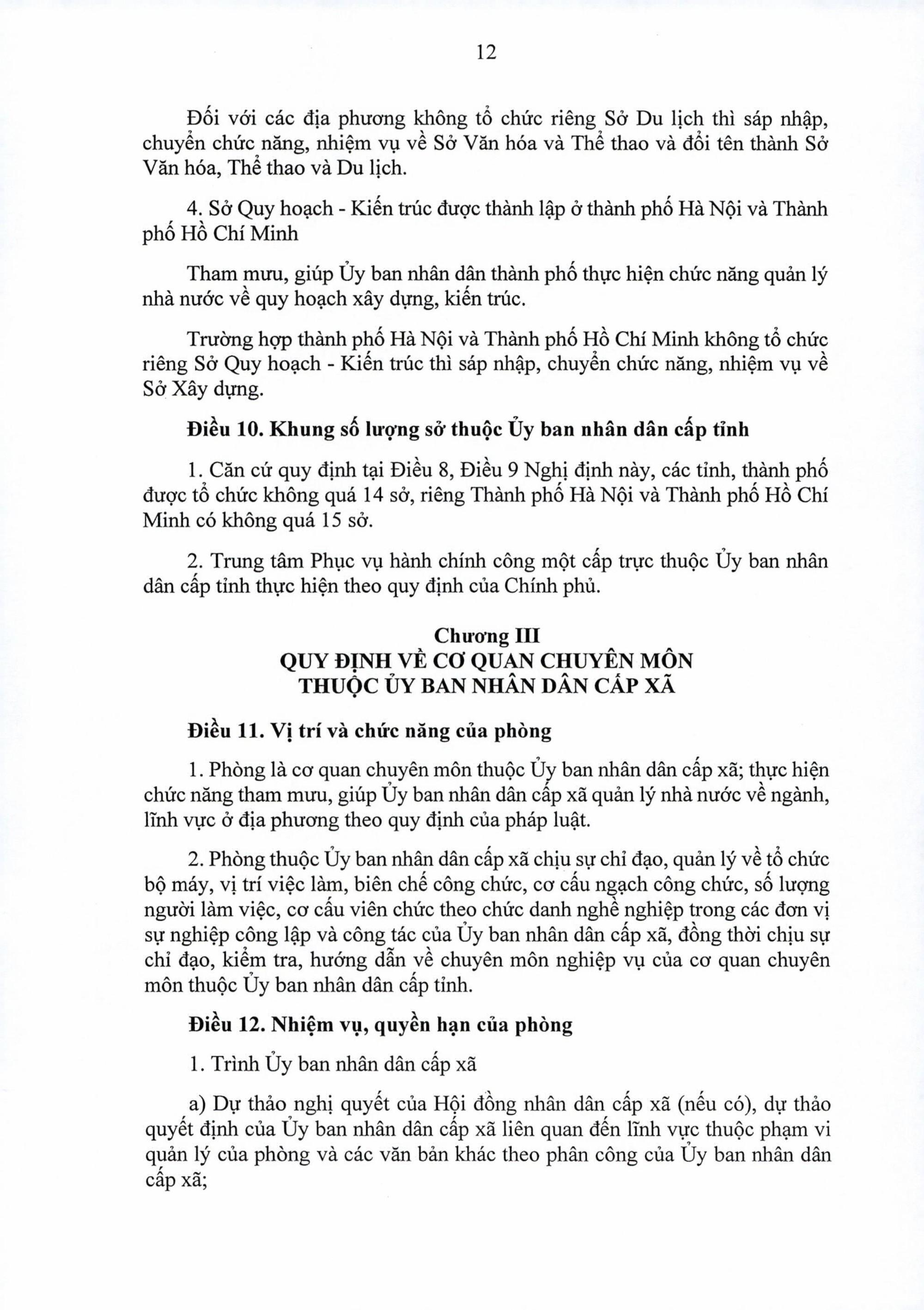 Nghị định này áp dụng đối với các cơ quan chuyên môn thuộc UBND cấp tỉnh gồm có sở và cơ quan tương đương; cơ quan chuyên môn thuộc UBND cấp xã gồm có phòng và cơ quan tương đương.
