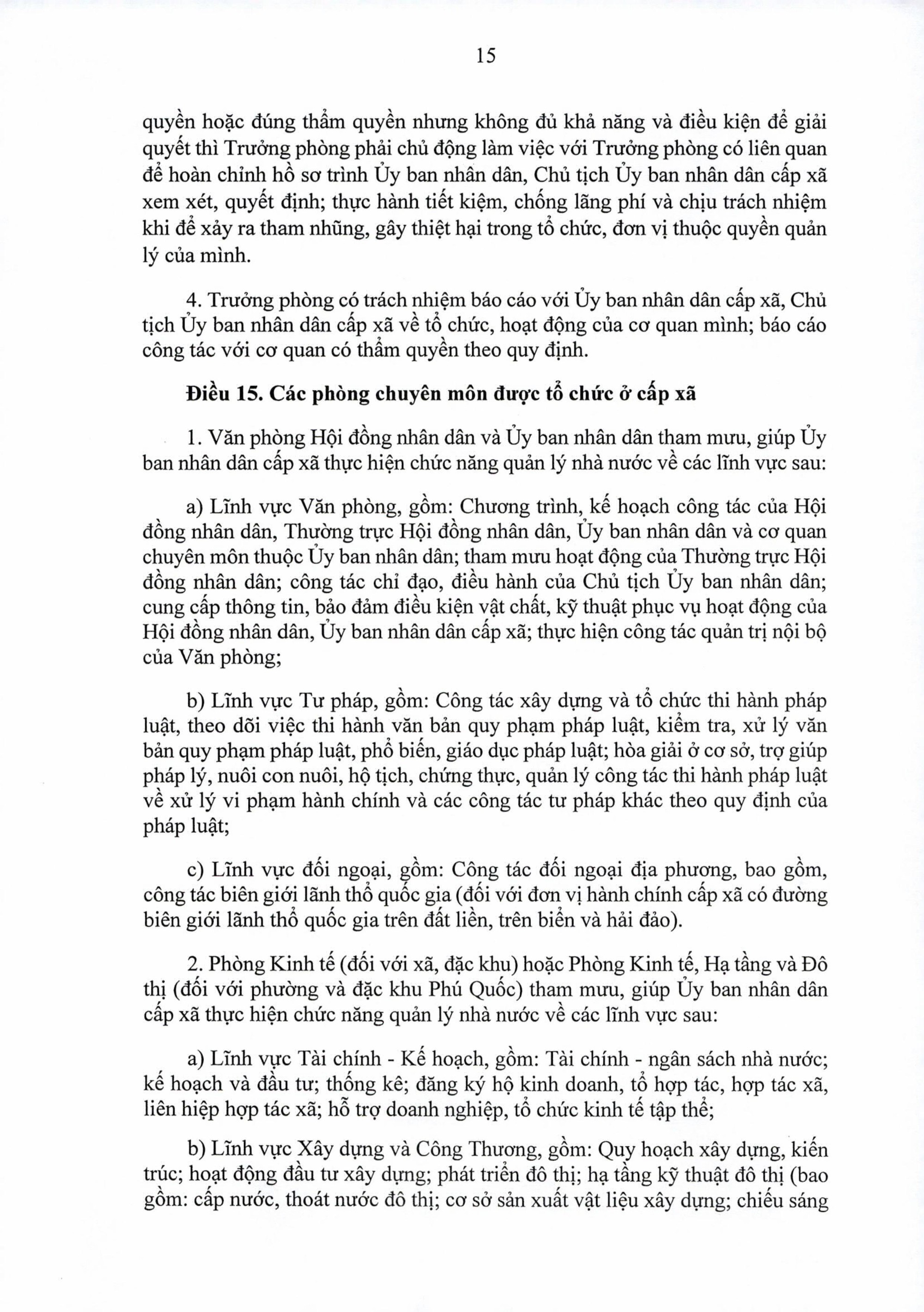 Chương III- Quy định về cơ quan chuyên môn thuộc Ủy ban nhân dân cấp xã (từ điều 11 đến điều 16).