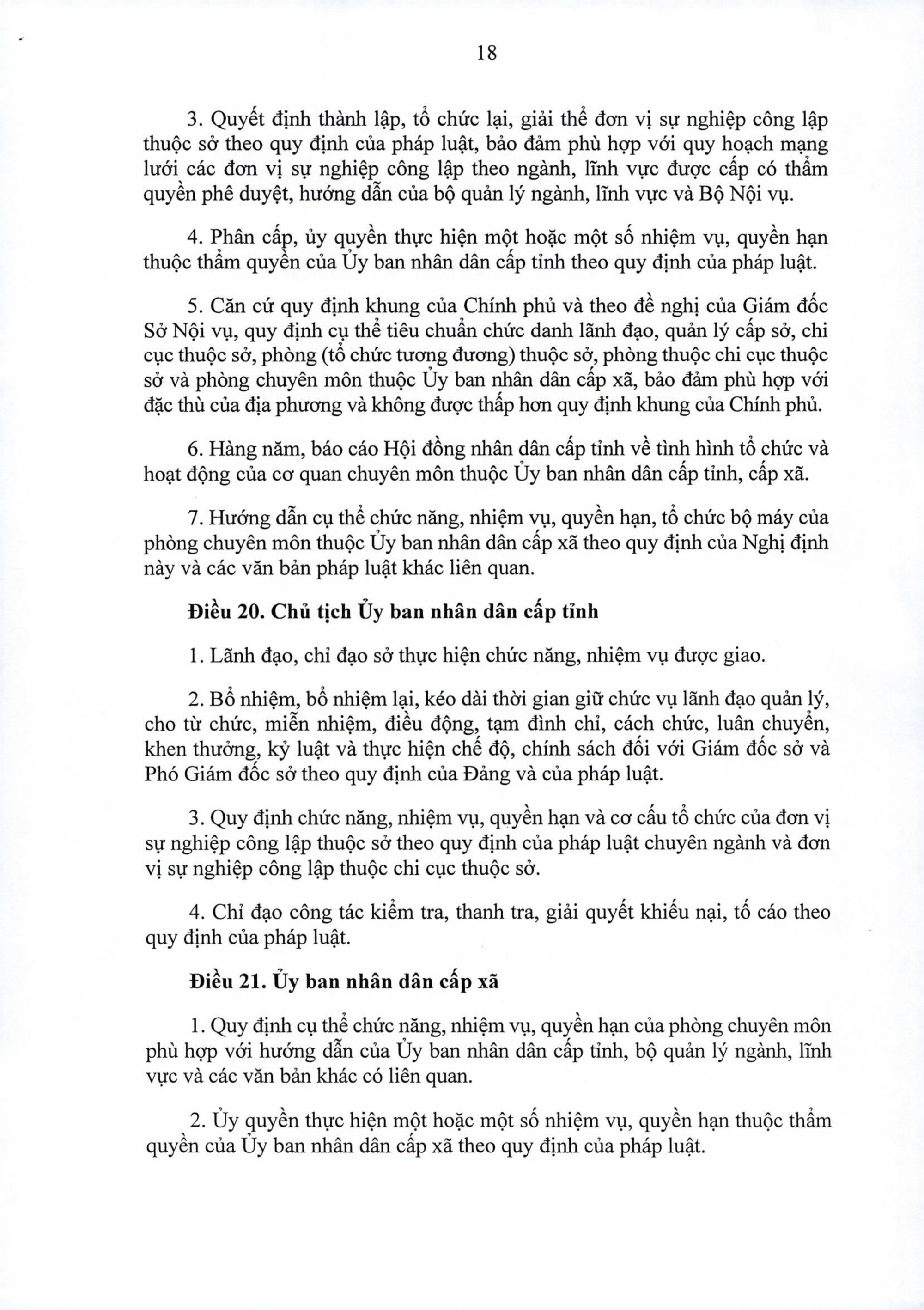 Nghị định này quy định về tổ chức các cơ quan chuyên môn thuộc UBND tỉnh, thành phố trực thuộc trung ương, UBND xã, phường, đặc khu thuộc tỉnh, thành phố trực thuộc trung ương.