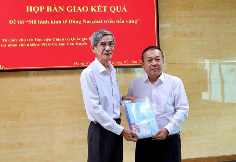 (CTT-Đồng Nai) - Chiều ngày 10-2, Sở Khoa học và Công nghệ tổ chức cuộc họp bàn giao kết quả nghiên cứu đề tài “Mô hình kinh tế Đồng Nai phát triển bền vững”. Đề tài do Học viện Chính trị Quốc gia Hồ Chí Minh chủ trì thực hiện; PGS.TS Bùi Văn Huyền làm chủ nhiệm.