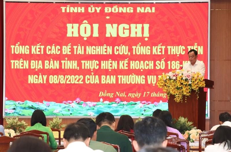 Ngày 8-8-2022, Ban Thường vụ Tỉnh ủy đã ban hành Kế hoạch số 186-KH/TU về nghiên cứu, tổng kết thực tiễn trên địa bàn tỉnh Đồng Nai, trong đó đã xác định 6 đề tài cần nghiên cứu, tổng kết. Đồng thời, Ban Thường vụ Tỉnh ủy đã phân công các đồng chí Ủy viên Ban Thường vụ (UVTV) Tỉnh ủy, người đứng đầu UBND tỉnh và các ban đảng Tỉnh ủy làm tổ trưởng các tổ nghiên cứu, tổng kết thực tiễn các đề tài.