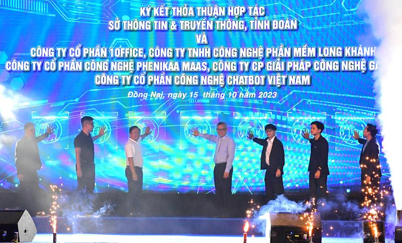 Lãnh đạo Sở TT-TT, Tỉnh đoàn và đại diện các công ty công nghệ ký kết thỏa thuận hợp tác về chuyển đổi số