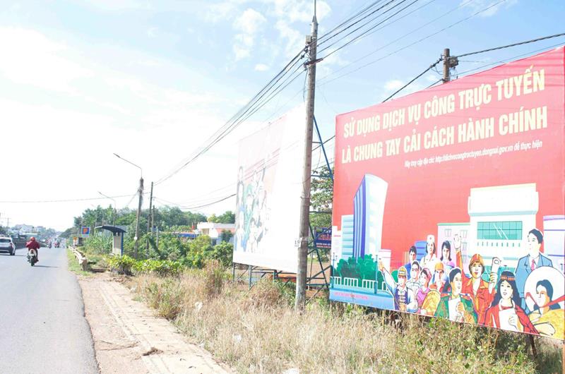 Một pa nô tuyên truyền sử dụng dịch vụ công trực tuyến đặt tại Quốc lộ 1A đoạn đi qua H.Trảng Bom