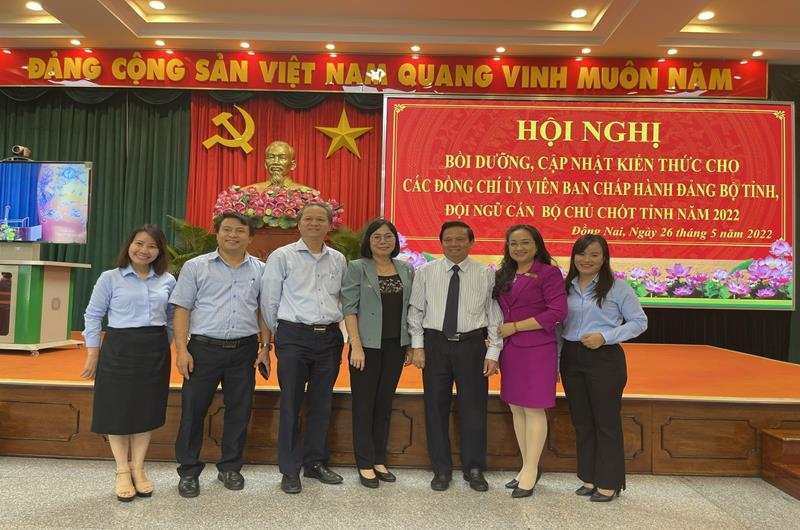 TS. Lê Doãn Hợp cùng chụp ảnh lưu niệm với cán bộ của tỉnh